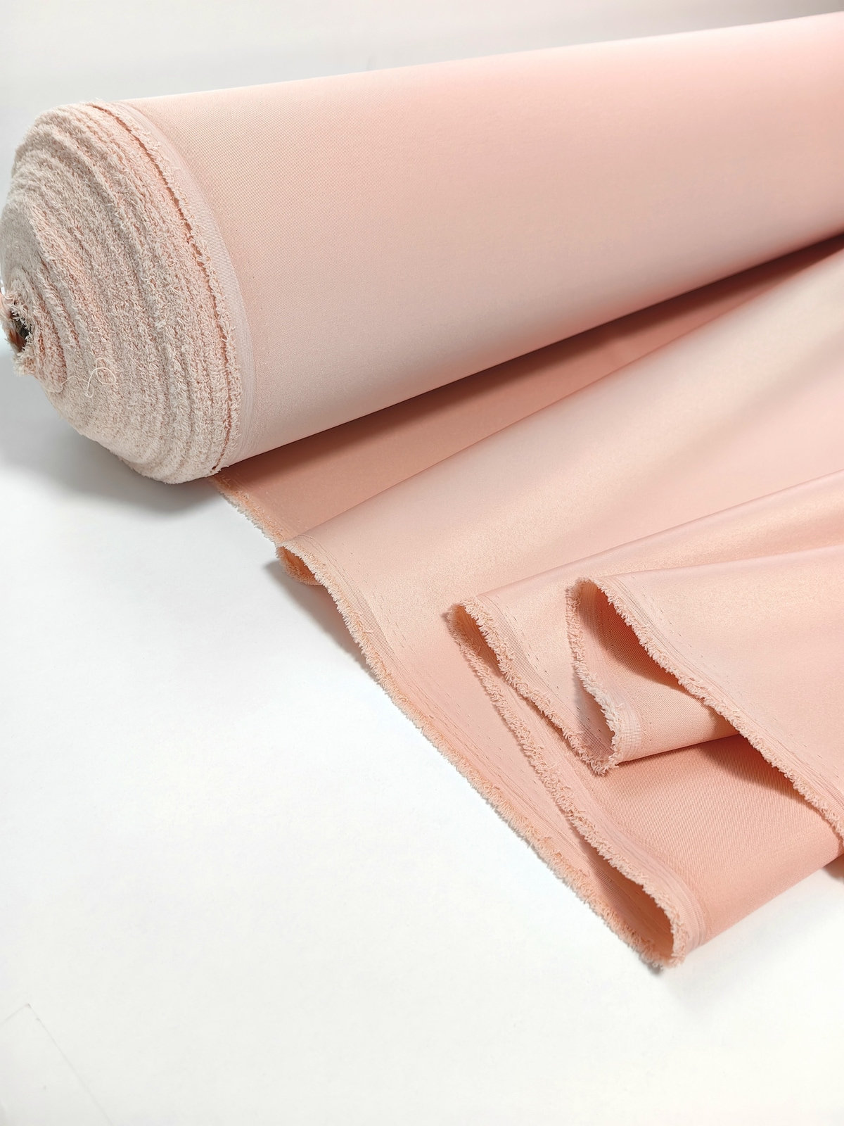 Američki saten likra boja Puder ima mat teksturu. Gusti, drži oblik i leži u dubokim naborima, zastorima. Ovaj saten dobro se rasteže u ednom pravcu i pristaje figuri. Omogućava vam da kreirate uske haljine, siluete sirene, haljine sa napuhanim rukavima i volanima.