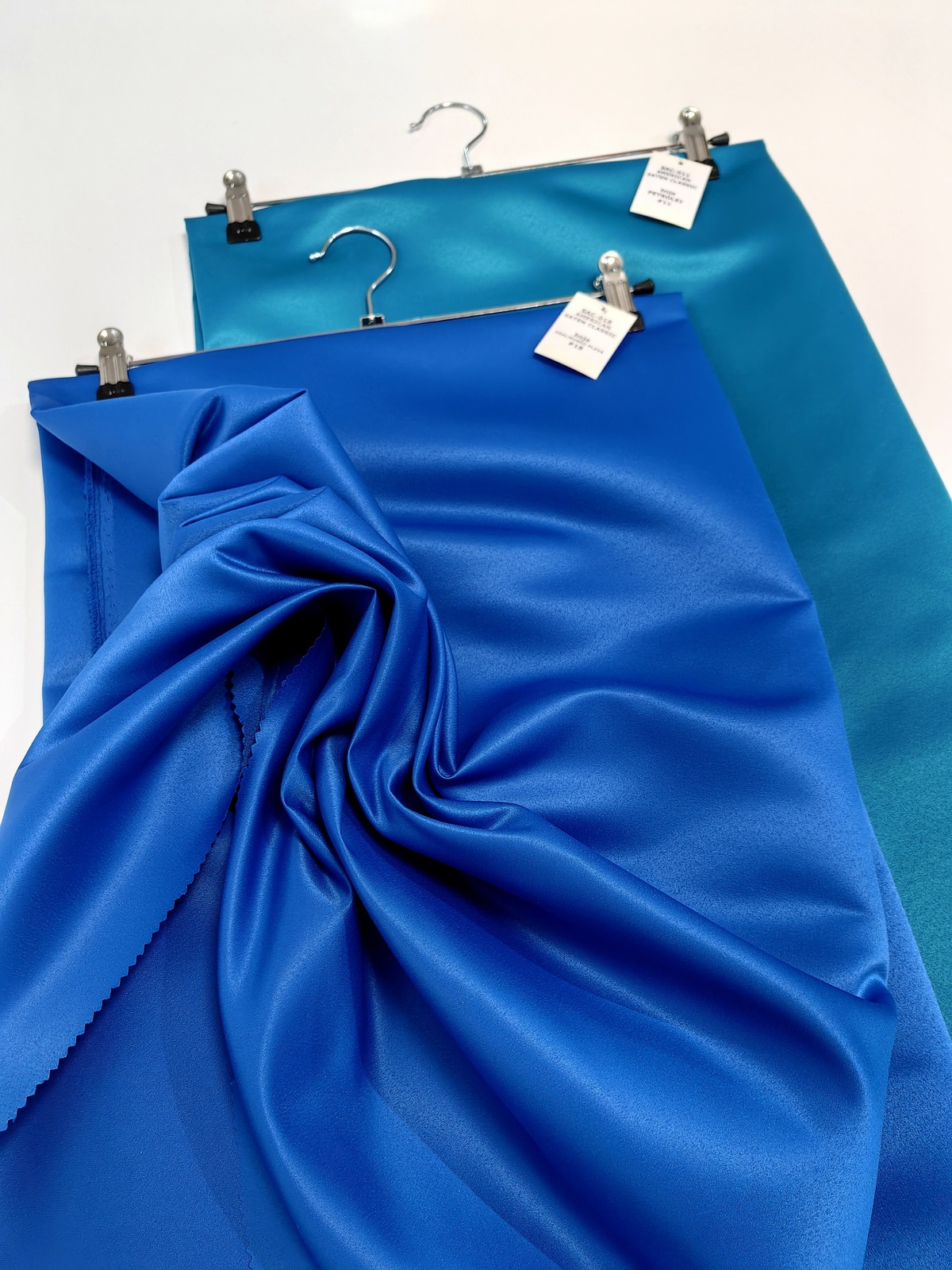Američki saten klasični boja Kraljevsko Plava ili Mat saten je čvrst saten sa mat površinom u čijem sastavu nema likre. Koristi se za šivenje svečanih haljina, maturskih haljina, dečjih haljina i raznih aksesoara koji moraju da drže oblik. Na primer, za mašne.
