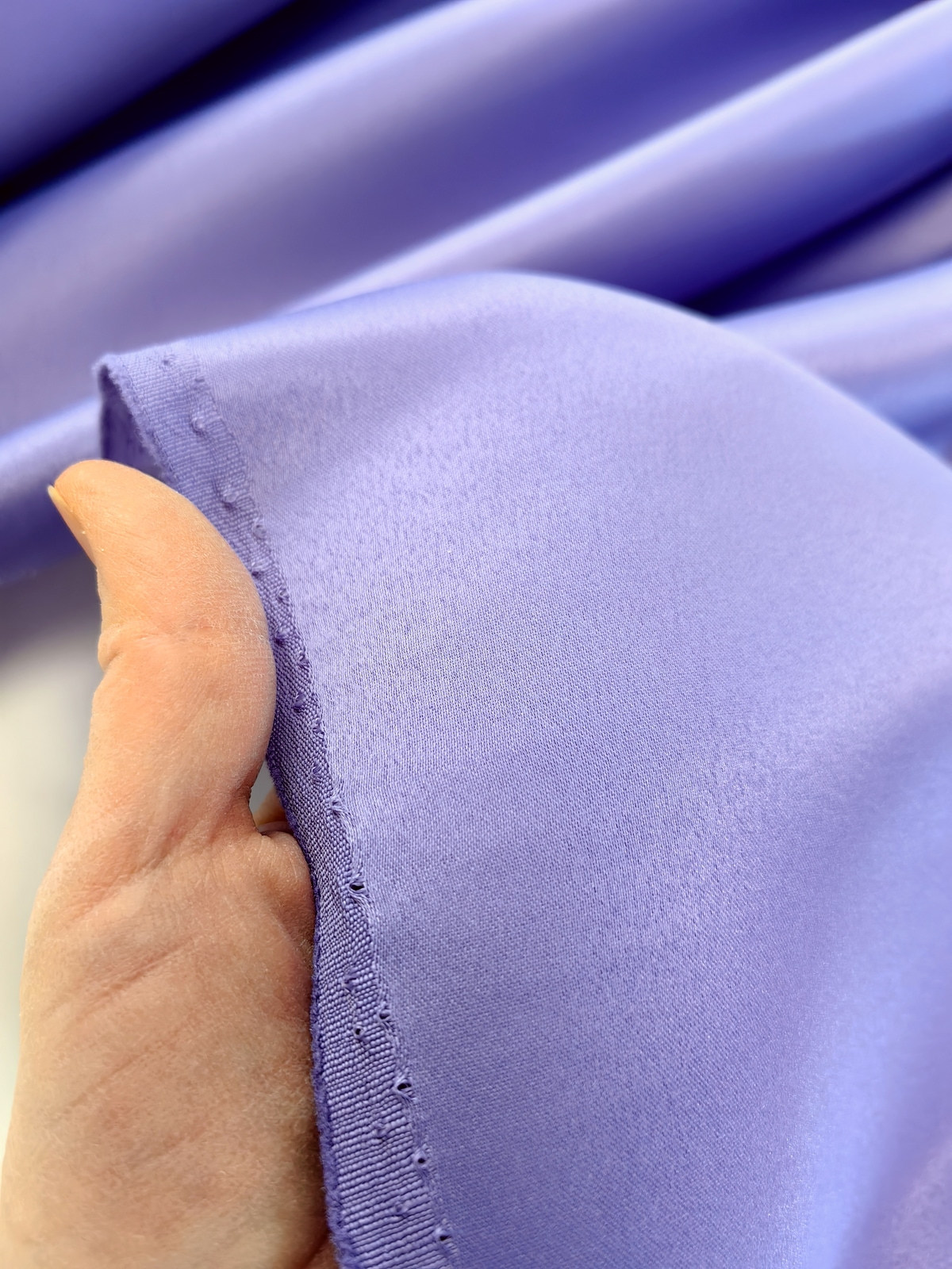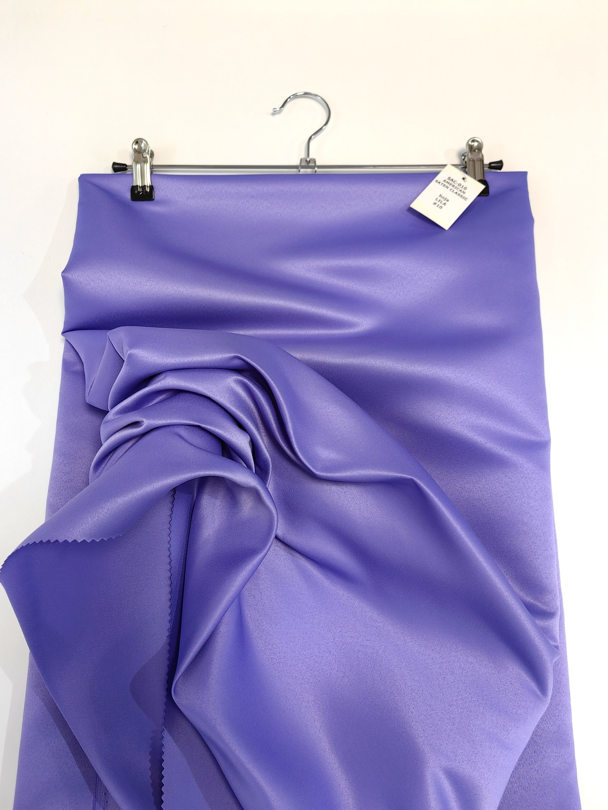 Američki saten klasični boja Lila ili Mat saten savršeno drži oblik, ima mat površinu, koju karakteriše visoka otpornost na habanje. Ovaj saten je gust, stabilan u obliku, ne sadrži likru, zbog čega se ne rasteže. Ne prosijava se. Nije skup. Koristi se u šivenju proizvoda koji zahtevaju zadržavanje oblika.