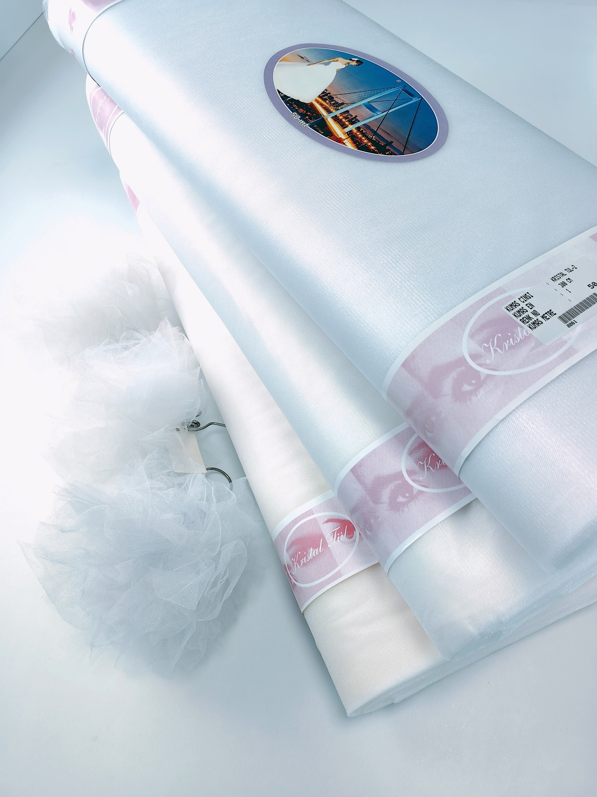 Til Kristal boja Bela upadljiv, privlačan, sa primetnim kristalnim sjajem. Savršeno drži oblik, nje skup. Najviše se koristi za dekor venčanja, proslava i automobila, za kostime, maskenbal, baletske pačke. Takođe se koristi za donje suknje ispod teških tkanina.