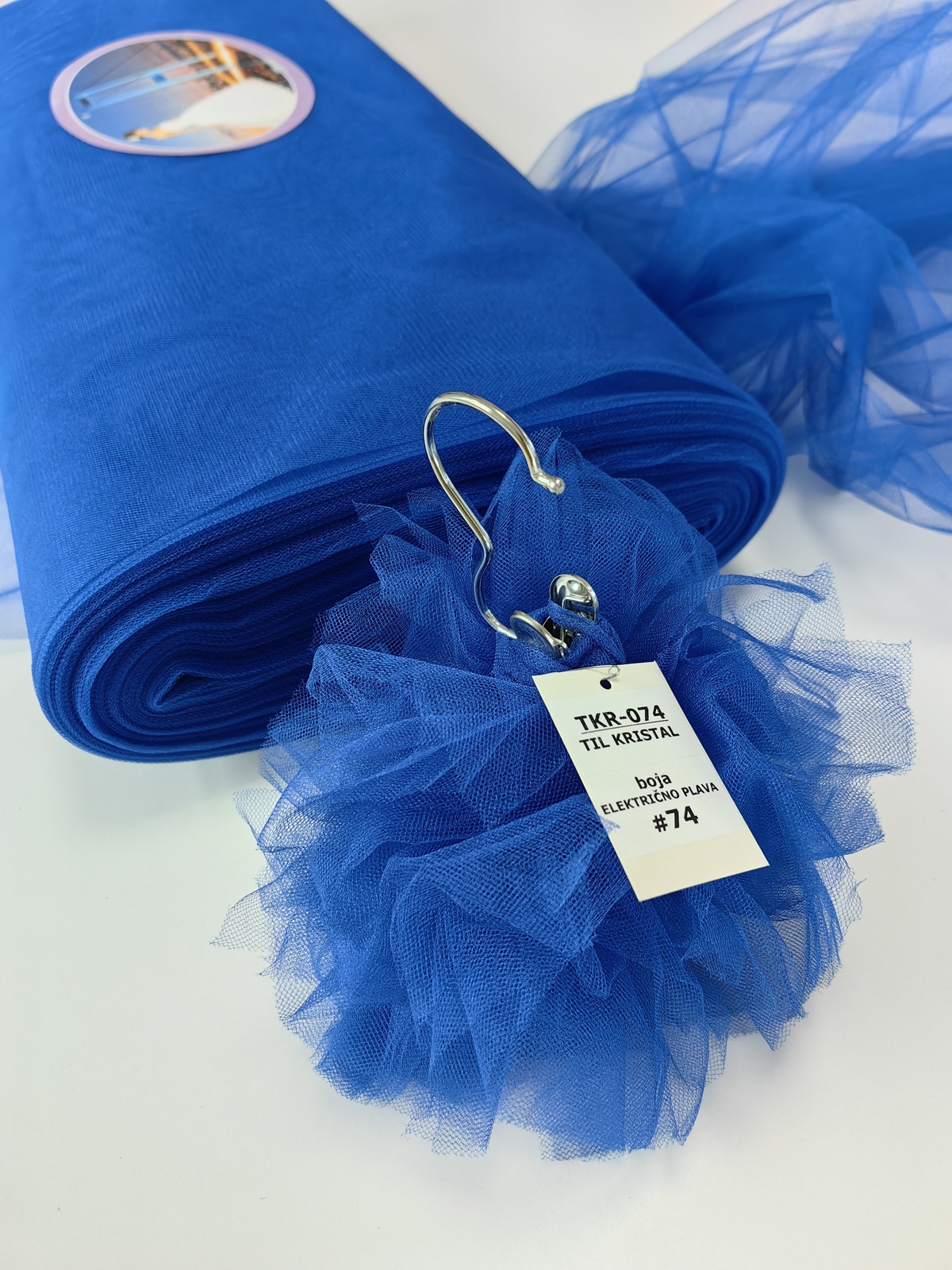 Til Kristal boja Električno Plava upadljiv, privlačan, sa primetnim kristalnim sjajem. Savršeno drži oblik, nje skup. Najviše se koristi za dekor venčanja, proslava i automobila, za kostime, maskenbal, baletske pačke. Takođe se koristi za donje suknje ispod teških tkanina.