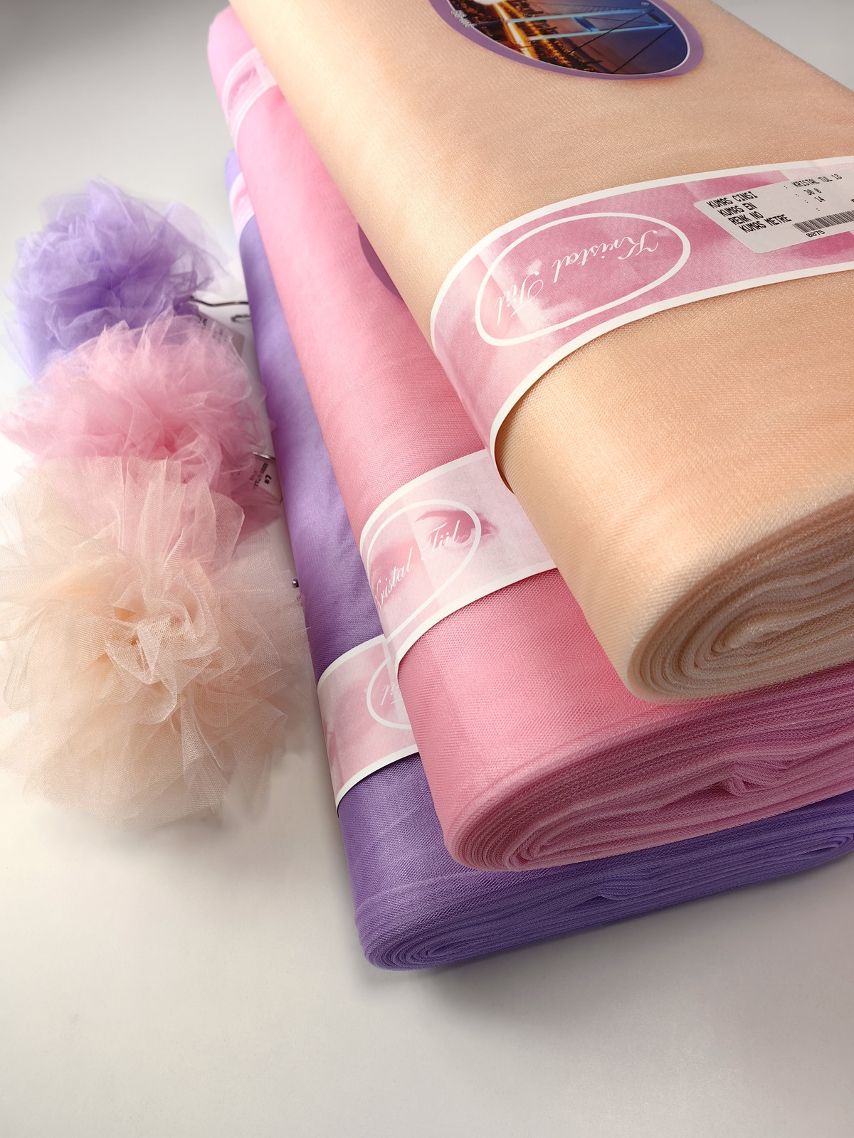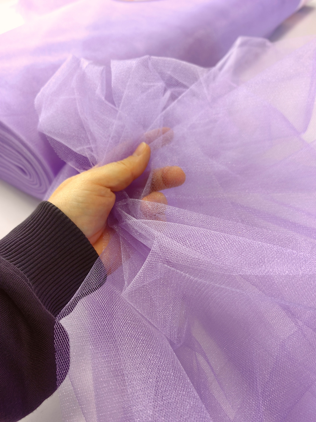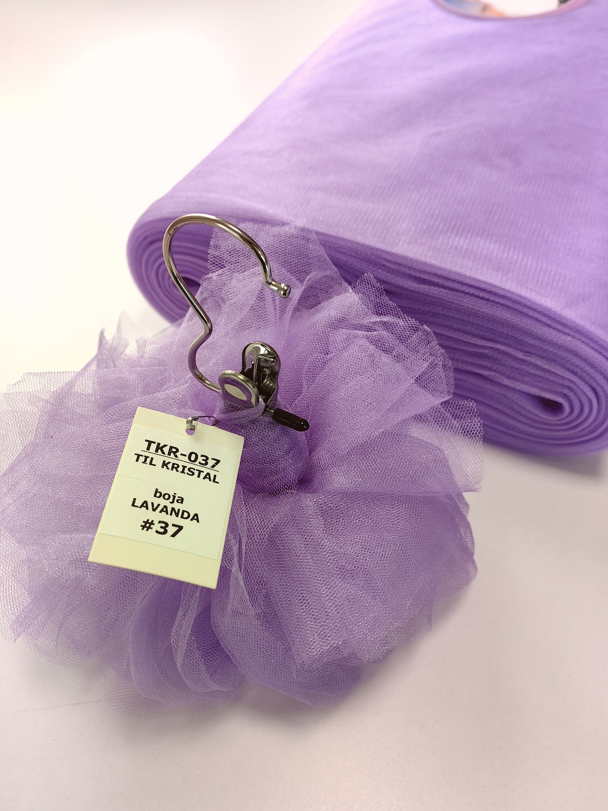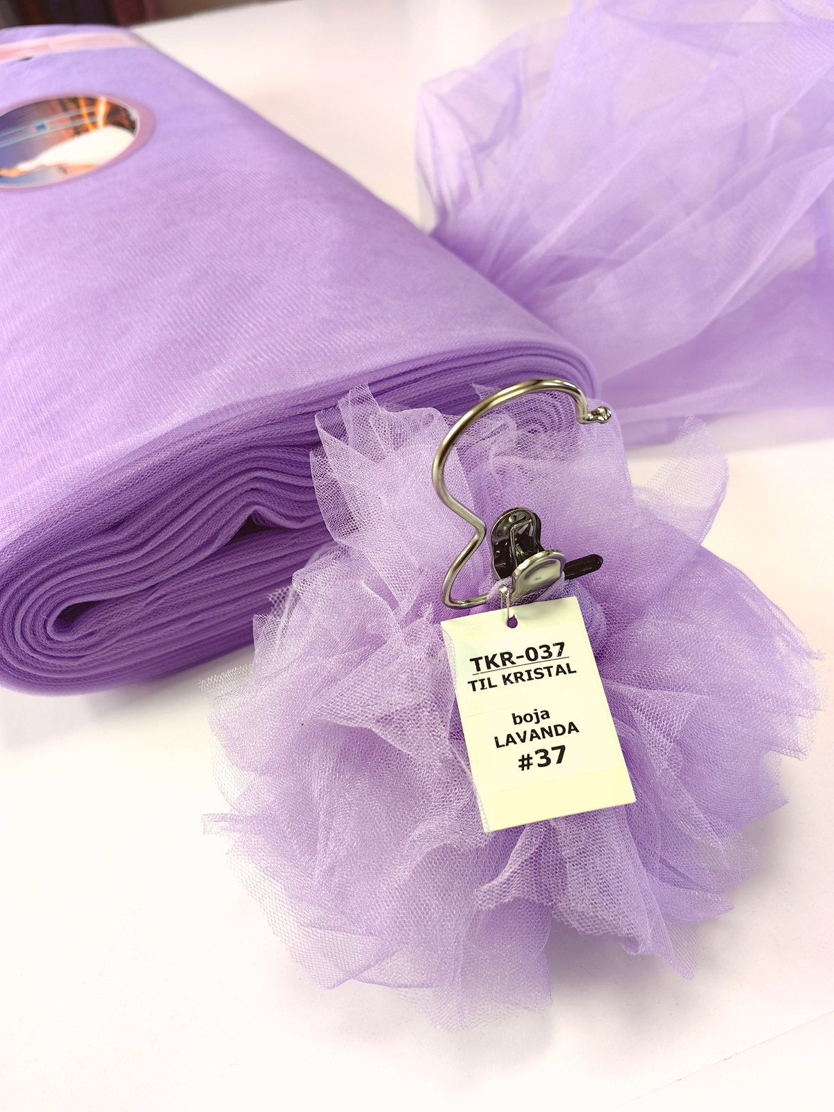 Til Kristal boja Lavanda upadljiv, privlačan, sa primetnim kristalnim sjajem. Savršeno drži oblik, nje skup. Najviše se koristi za dekor venčanja, proslava i automobila, za kostime, maskenbal, baletske pačke. Takođe se koristi za donje suknje ispod teških tkanina.