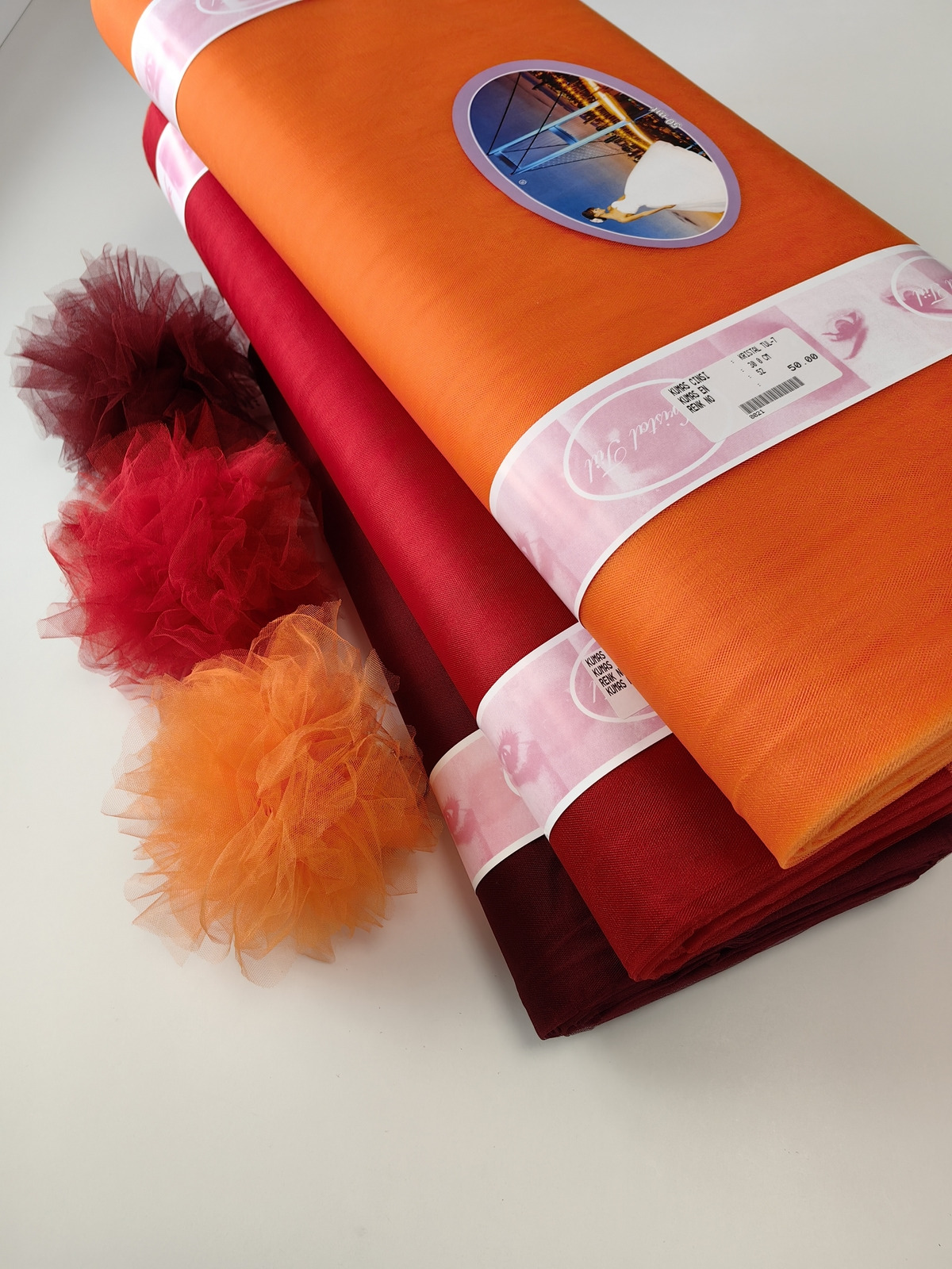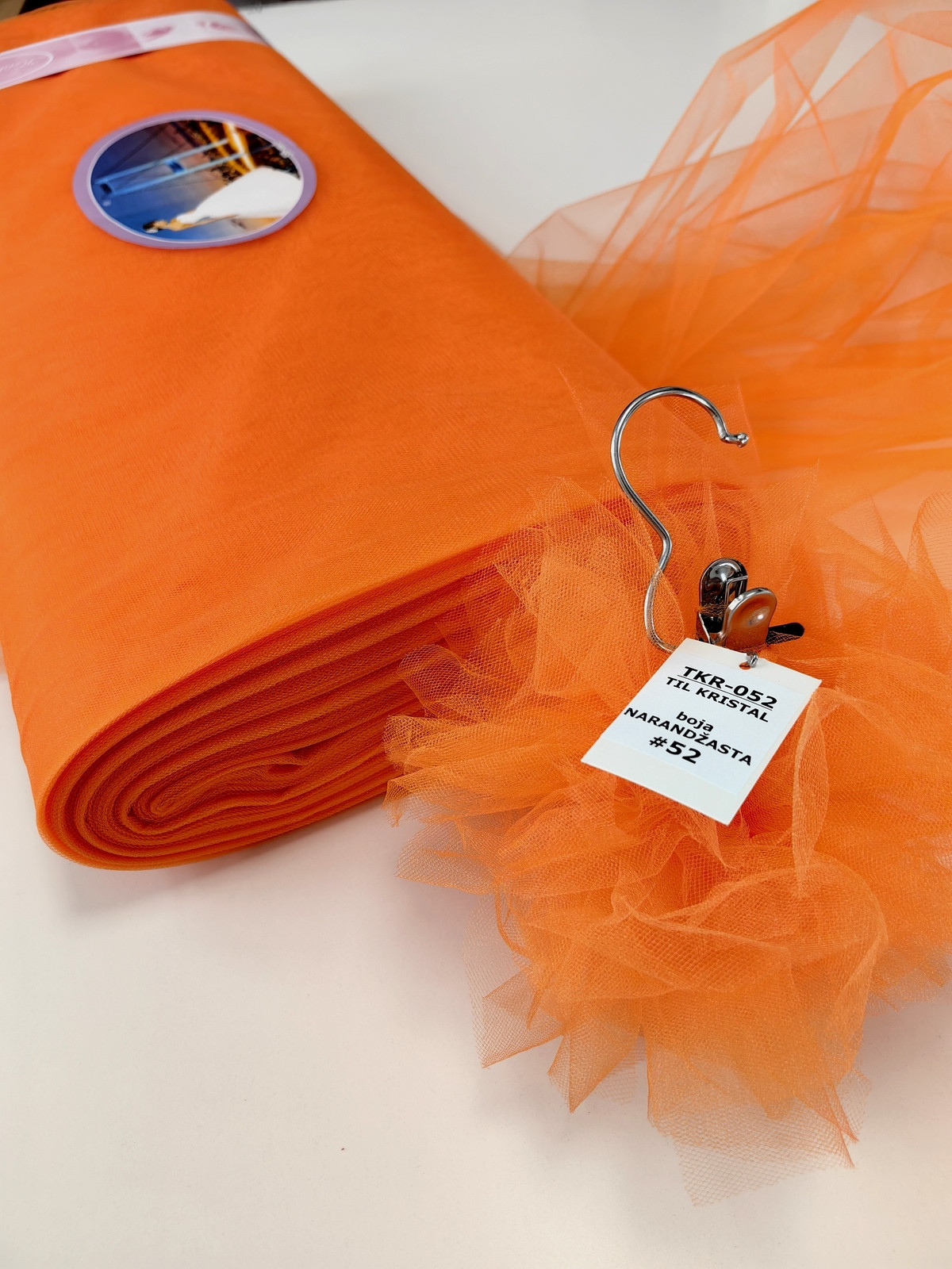 Til Kristal boja Narandžasta upadljiv, privlačan, sa primetnim kristalnim sjajem. Savršeno drži oblik, nje skup. Najviše se koristi za dekor venčanja, proslava i automobila, za kostime, maskenbal, baletske pačke. Takođe se koristi za donje suknje ispod teških tkanina.