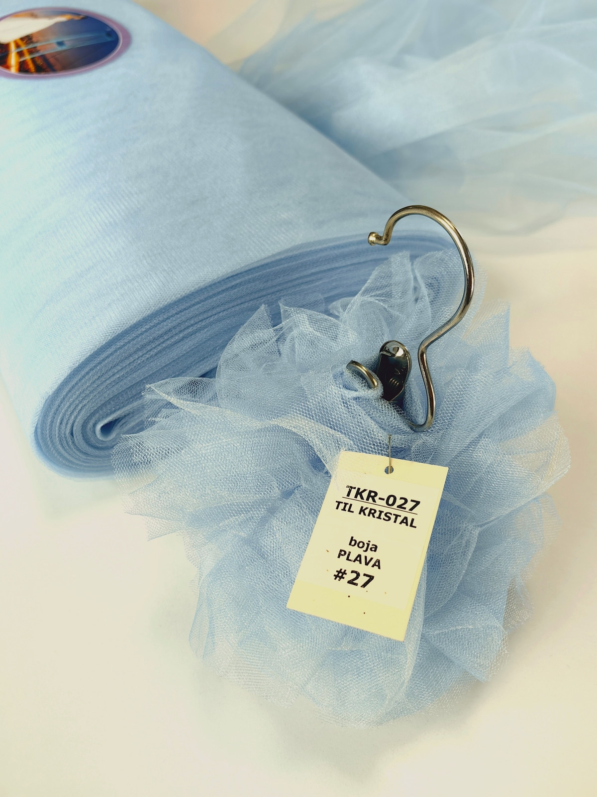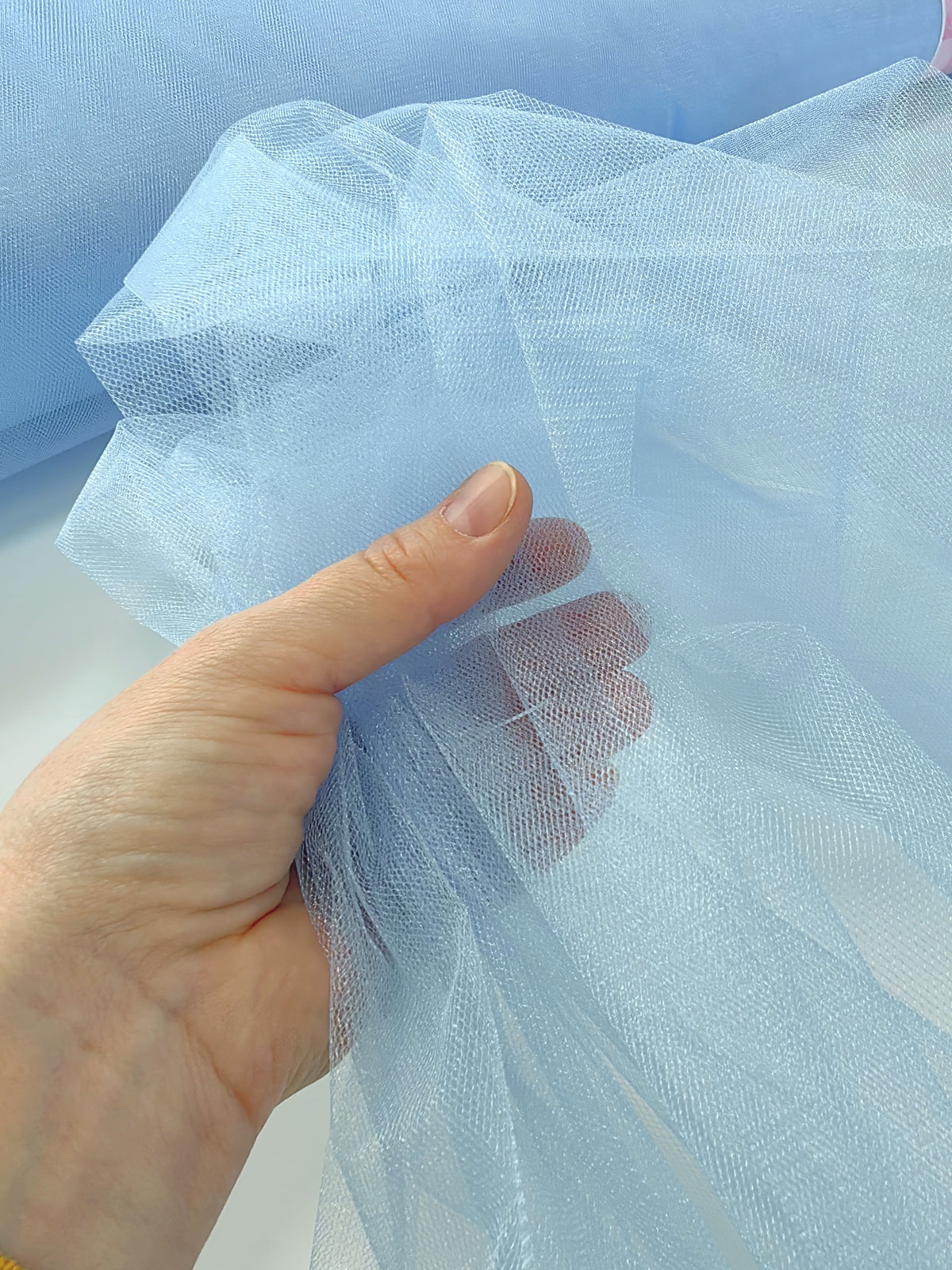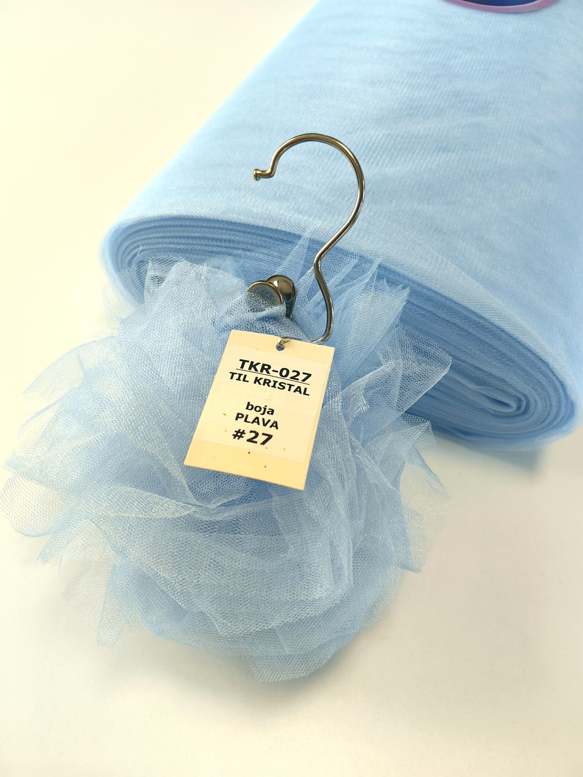 Til Kristal boja Plava upadljiv, privlačan, sa primetnim kristalnim sjajem. Savršeno drži oblik, nje skup. Najviše se koristi za dekor venčanja, proslava i automobila, za kostime, maskenbal, baletske pačke. Takođe se koristi za donje suknje ispod teških tkanina.