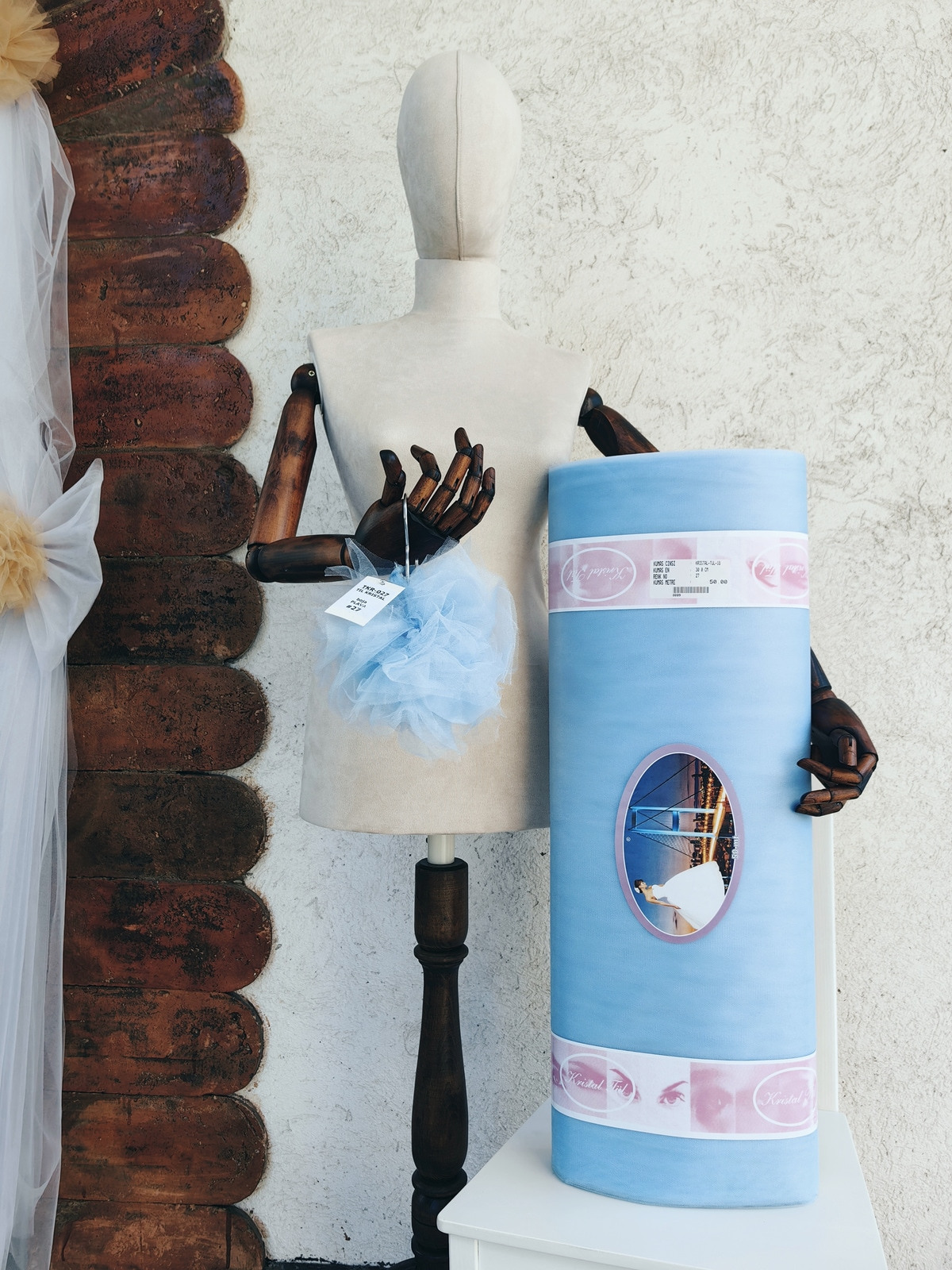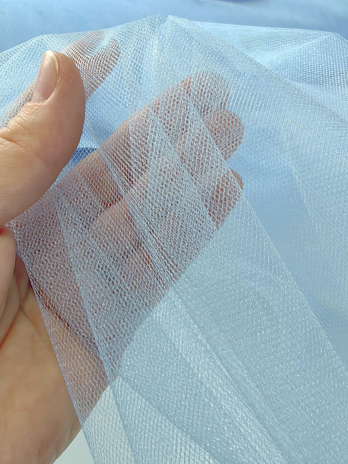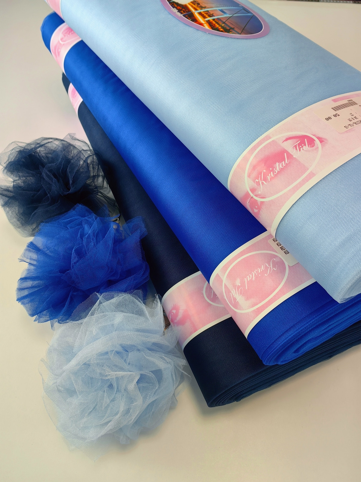 Til Kristal boja Plava upadljiv, privlačan, sa primetnim kristalnim sjajem. Savršeno drži oblik, nje skup. Najviše se koristi za dekor venčanja, proslava i automobila, za kostime, maskenbal, baletske pačke. Takođe se koristi za donje suknje ispod teških tkanina.
