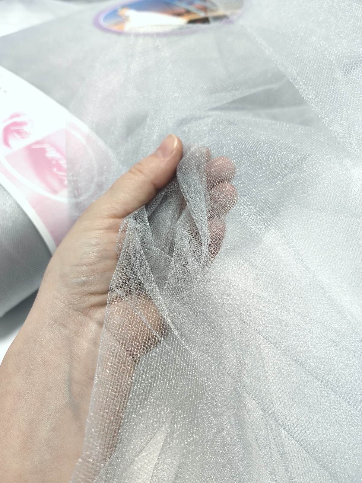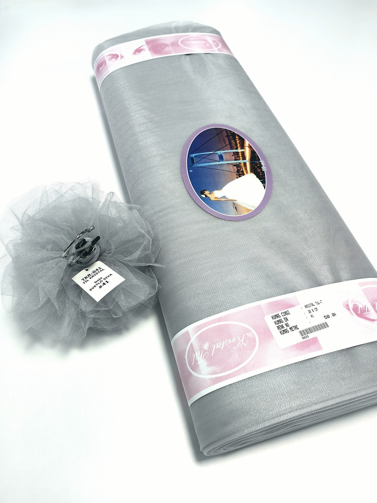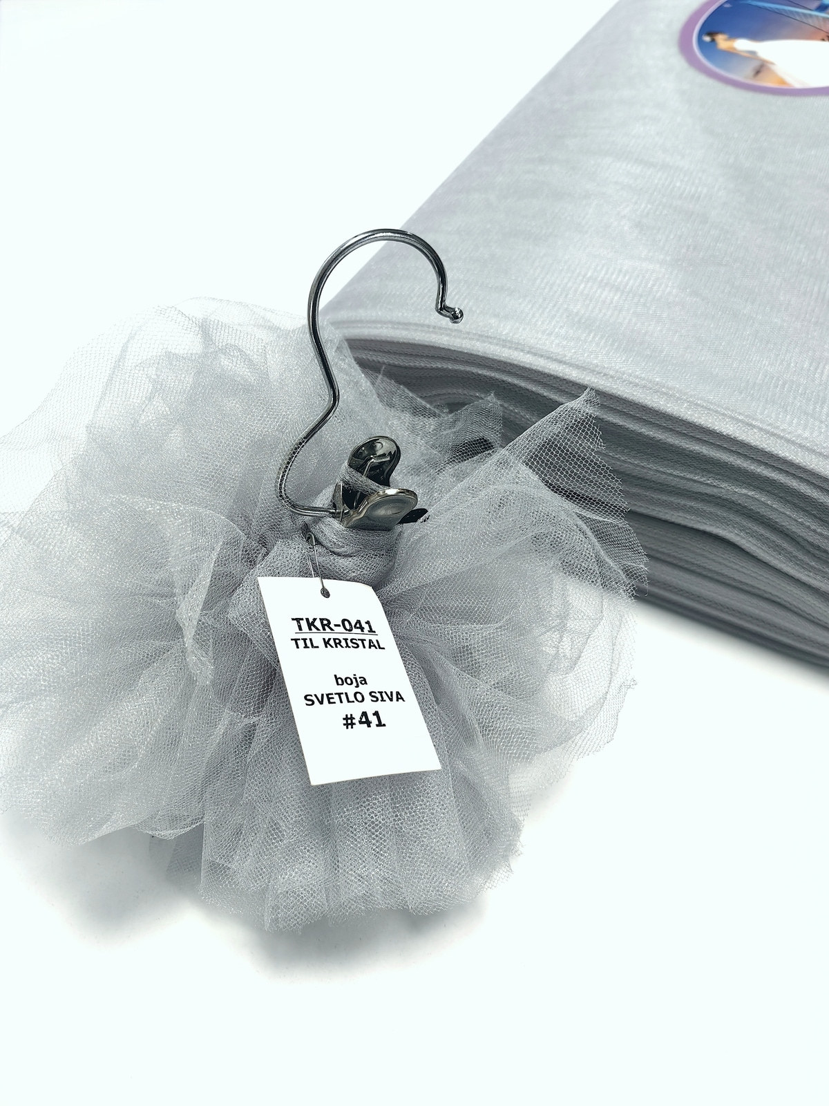 Til Kristal boja Svetlo Siva upadljiv, privlačan, sa primetnim kristalnim sjajem. Savršeno drži oblik, nje skup. Najviše se koristi za dekor venčanja, proslava i automobila, za kostime, maskenbal, baletske pačke. Takođe se koristi za donje suknje ispod teških tkanina.