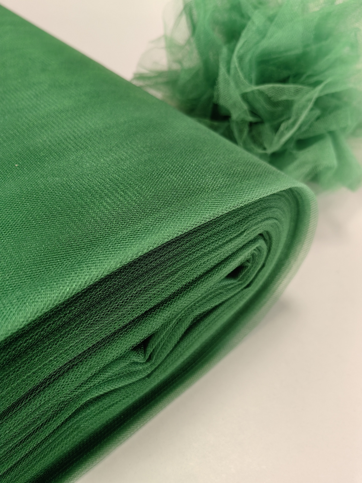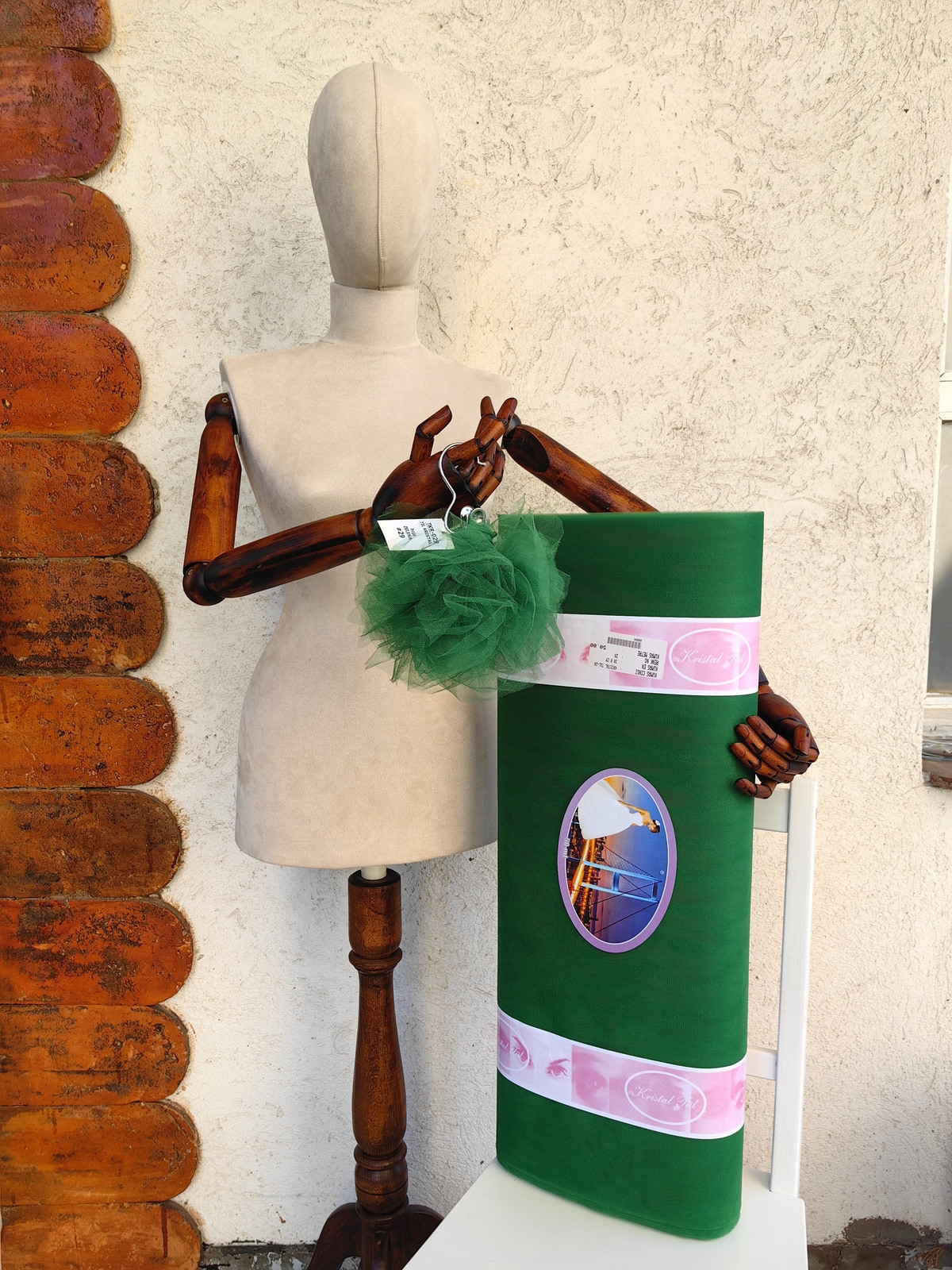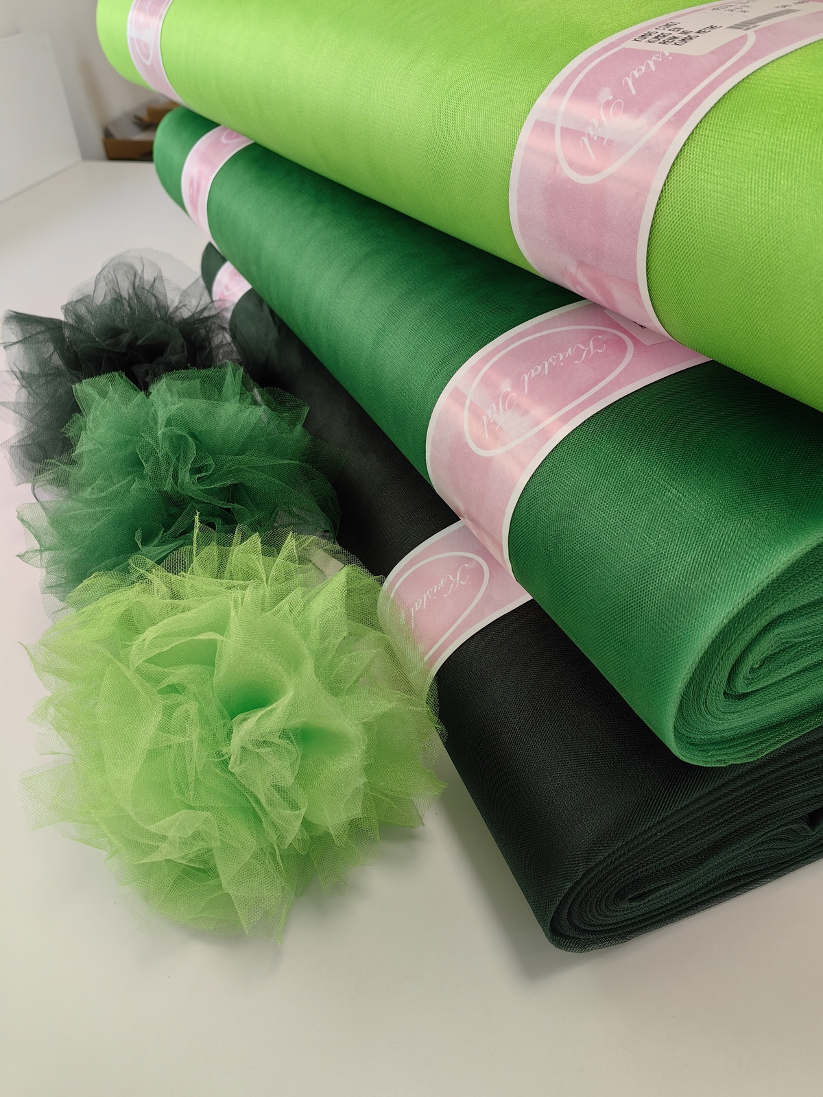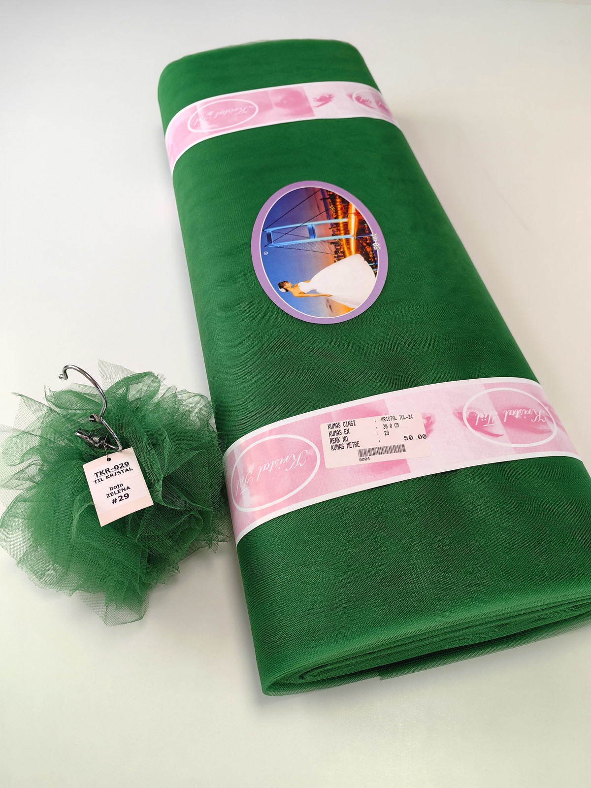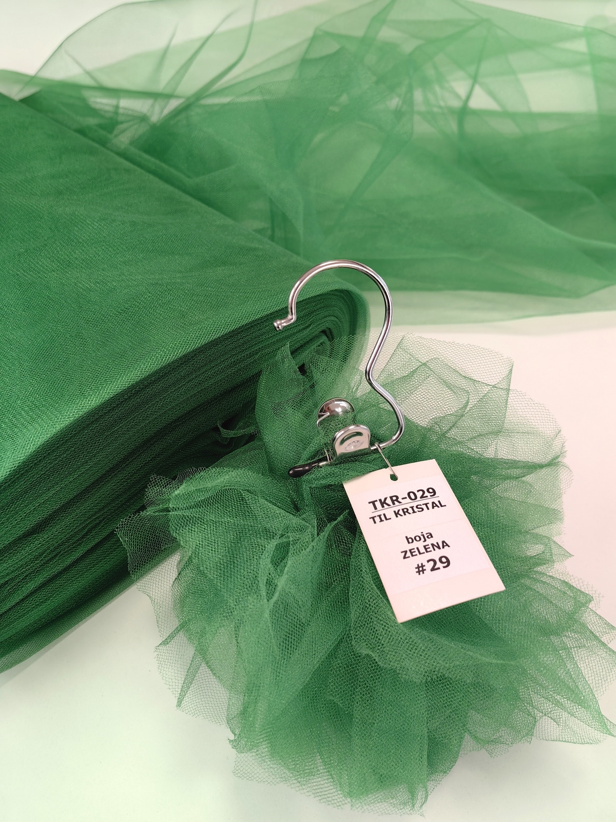Til Kristal boja Zelena upadljiv, privlačan, sa primetnim kristalnim sjajem. Savršeno drži oblik, nje skup. Najviše se koristi za dekor venčanja, proslava i automobila, za kostime, maskenbal, baletske pačke. Takođe se koristi za donje suknje ispod teških tkanina.