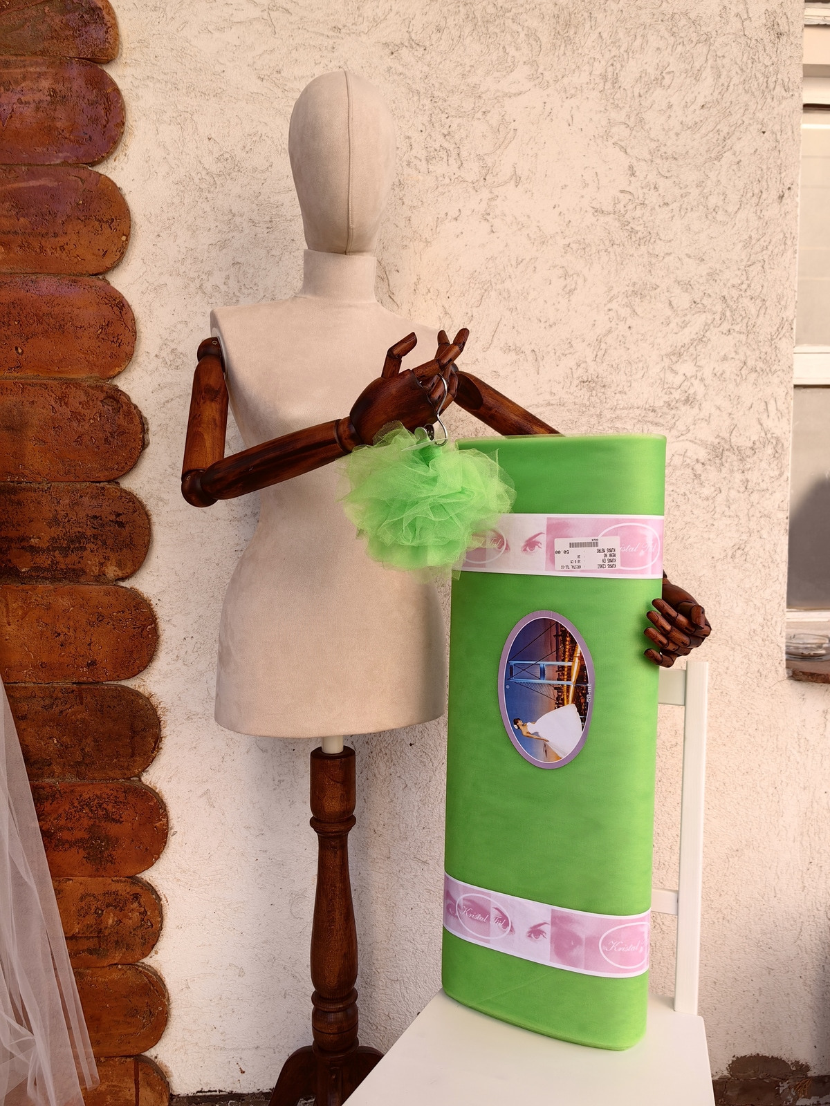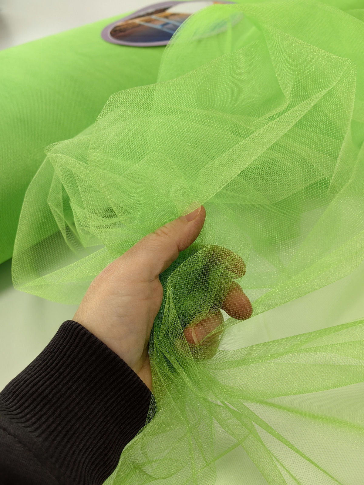 Til Kristal boja Zelena Jabuka upadljiv, privlačan, sa primetnim kristalnim sjajem. Savršeno drži oblik, nje skup. Najviše se koristi za dekor venčanja, proslava i automobila, za kostime, maskenbal, baletske pačke. Takođe se koristi za donje suknje ispod teških tkanina.