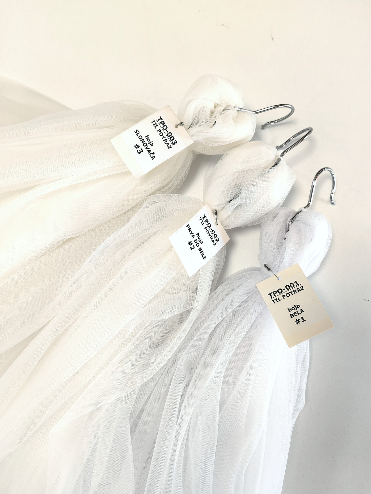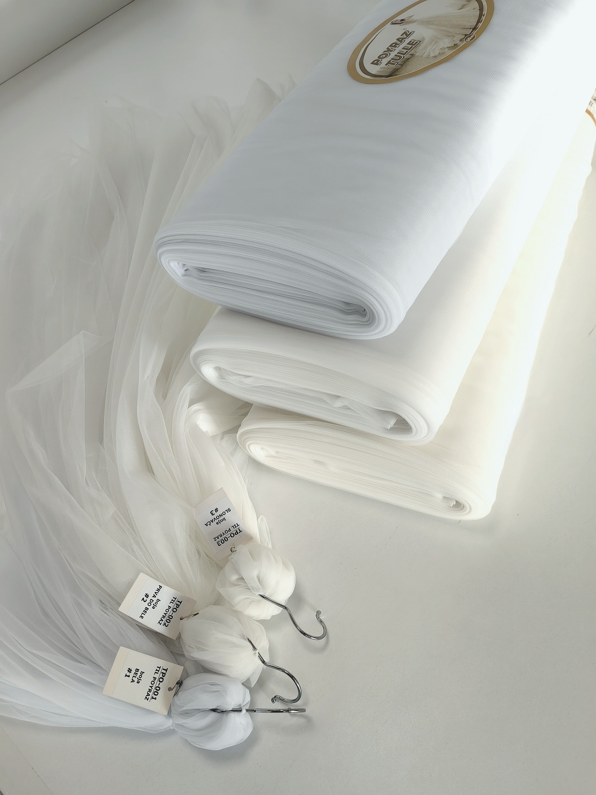 Til Poyraz boja Bela je lagan, lepršav, providan, mat, nje skup. Na raspolaganju je široka paleta boja. Koristi se za dekor svadbe i proslava, kućni dekor, baldahine, haljine, suknje, kostime etc.