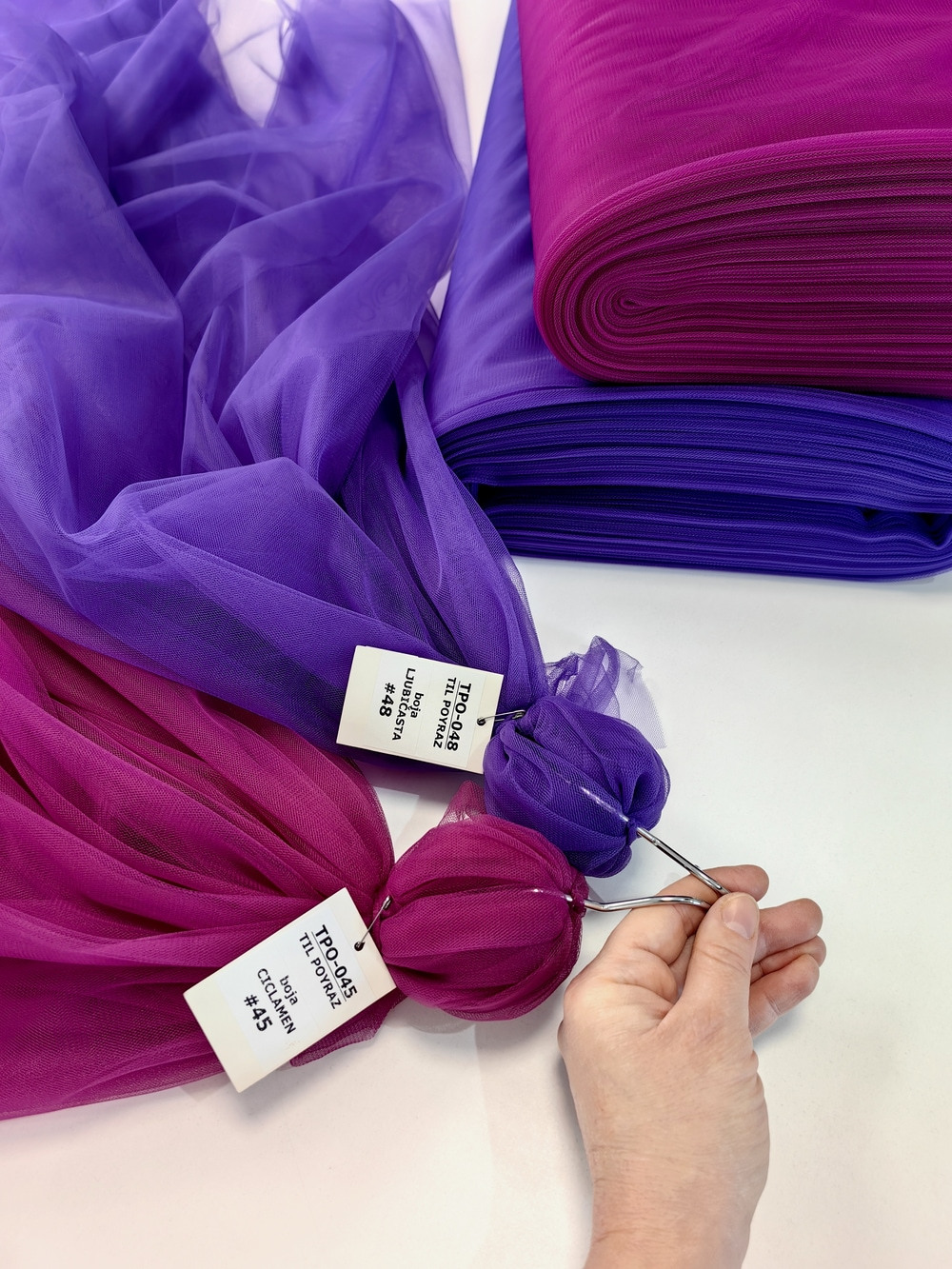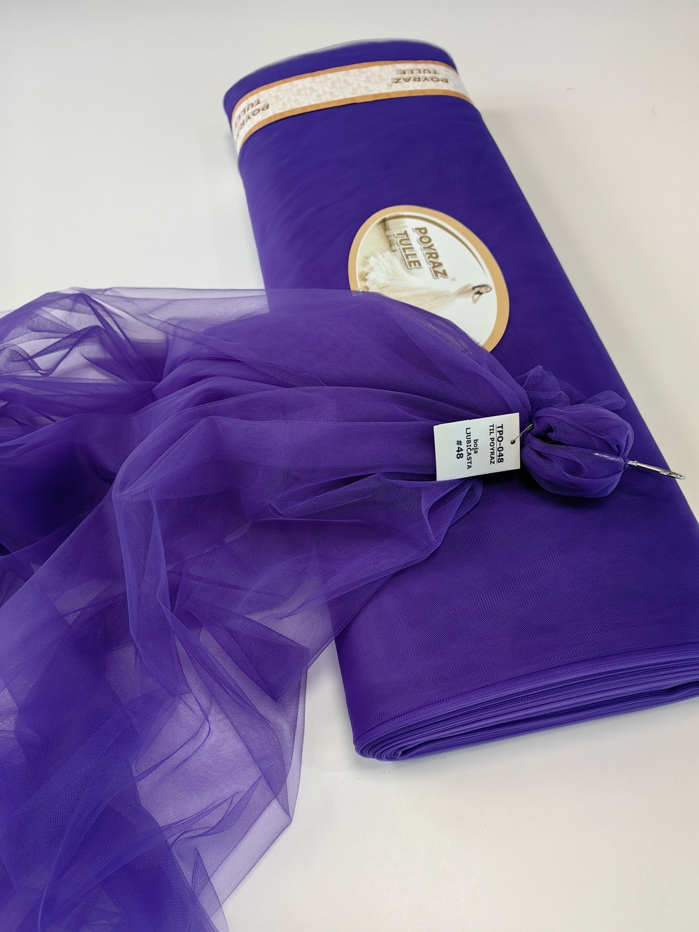 Til Poyraz boja Ljubičasta je lagan, lepršav, providan, mat, nje skup. Na raspolaganju je široka paleta boja. Koristi se za dekor svadbe i proslava, kućni dekor, baldahine, haljine, suknje, kostime etc.